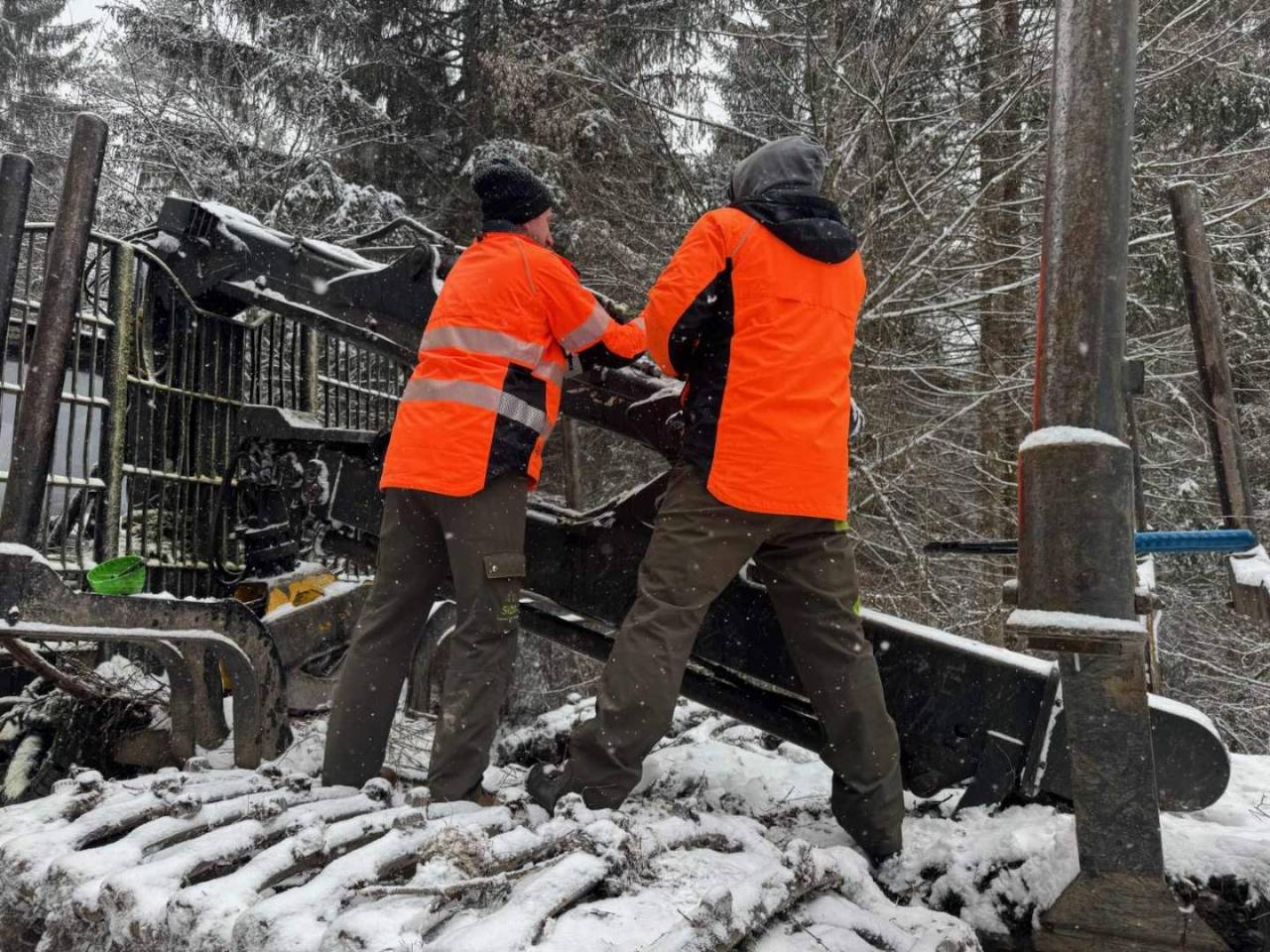 Na terenu sta uspešno sanirala počeno hidravlično cev na forwarderju in tako poskrbela, da je delo v gozdu lahko nemoteno steklo naprej. Razmere so bile vse prej kot enostavne - sneg, mraz in oddaljenost od civilizacije - a kot pravijo gozdarji, ko je treba, ni težko.