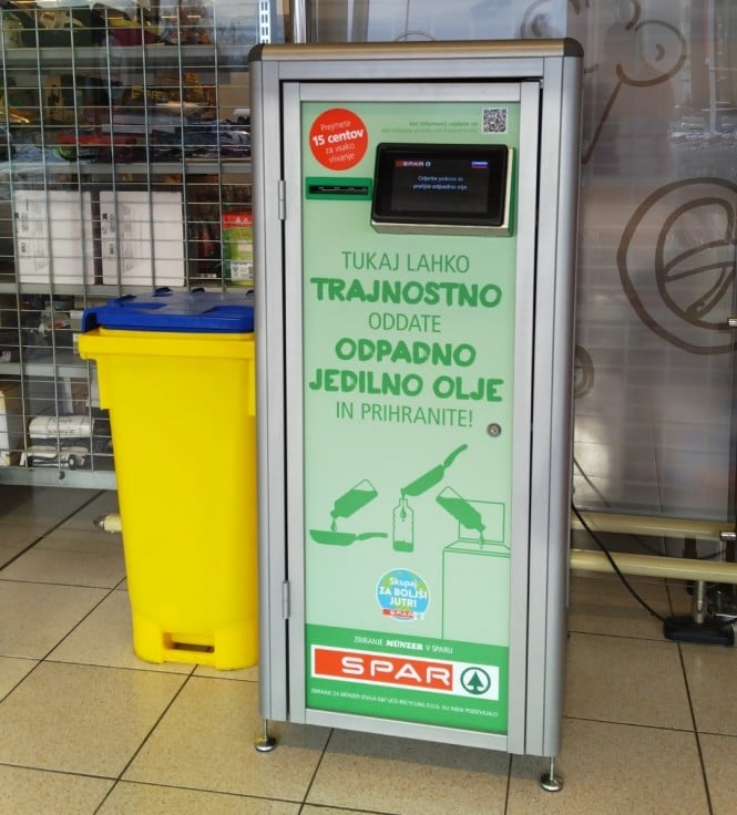 V ta namen so v INTERSPARU Kranj in v SPARU Kranj Planina pred vhodom v trgovino na vidno mesto postavili dva nova zbiralnika odpadnega jedilnega olja. Kupci lahko sedaj odpadno jedilno olje oddajo na preprost in priročen način, v zameno pa prejmejo kupon kot zahvalo za odgovorno ravnanje.