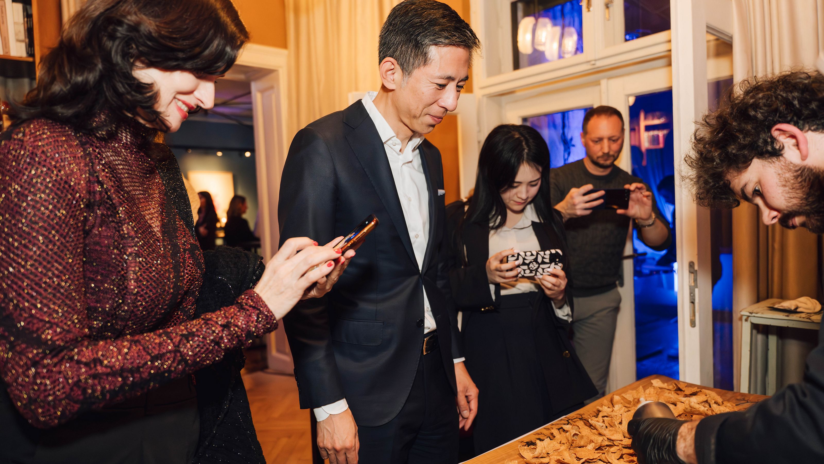V ozadju je večer mehko povezovala glasba Kaye Tokuhisa. Nevsiljiv jazz je ustvaril prostor za naraven stik med gosti; pogovori so tekli lahkotno, medtem ko je atmosfera dihala s prostorom.