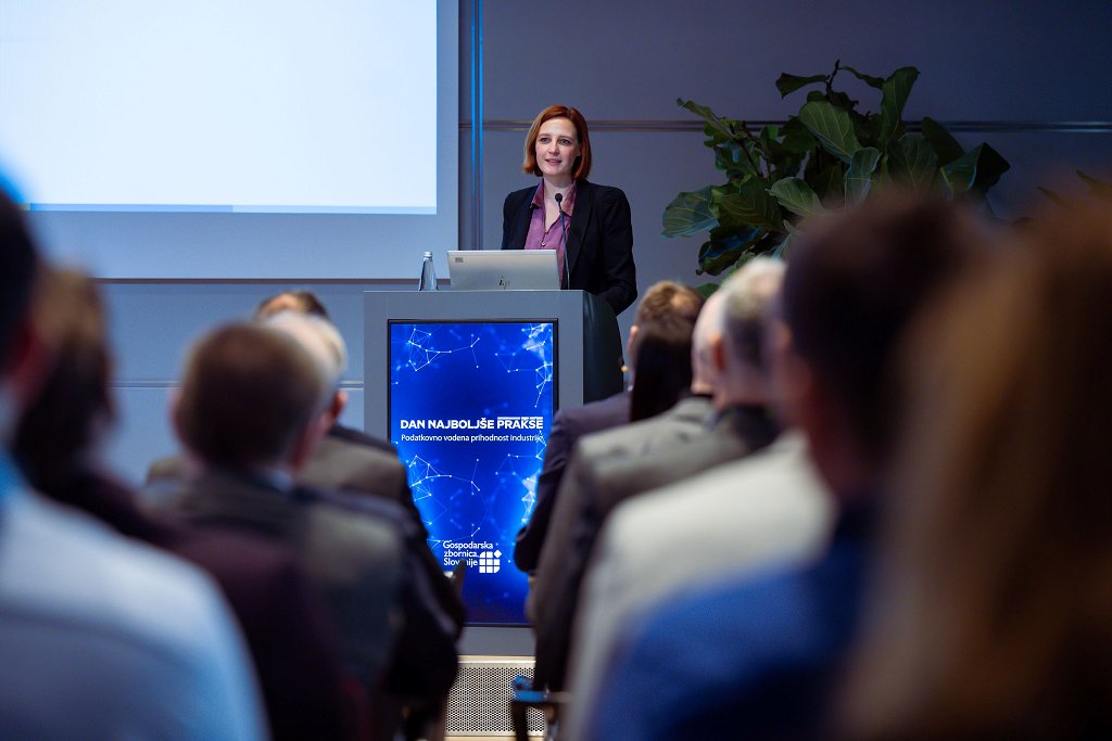 »Industrija danes temelji na vse bolj premišljenem odločanju, ki sloni na podatkih,« je uvodoma poudarila generalna direktorica GZS, Vesna Nahtigal. Izpostavila je strateški pomen programa Made in Slovenia 2035, v okviru katerega slovenska podjetja načrtujejo za več kot 19,2 milijarde evrov investicij, kar predstavlja enega večjih razvojnih impulzov v našem gospodarstvu. »Ta izjemen potencial moramo izkoristiti z vlaganji v avtomatizacijo, integracijo umetne inteligence in nove tehnologije. Ker v našem prostoru še vedno primanjkuje dobrih praks, je današnje povezovanje več industrijskih panog ključno za prenos znanj, ki te investicije pretvarjajo v rezultate,« je še dodala Nahtigal.