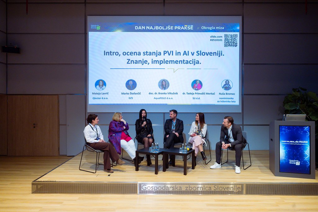 V okrogli mizi na temo podatkovno vodene prihodnosti industrije so svoja videnja soočili ključni akterji slovenskega gospodarstva. Mateja Lavrič, direktorica Qlector d.o.o., vidi še veliko priložnosti za izboljšave podatkovnega vodenja industrije in poudarja, da je pri vpeljavi umetne inteligence ključna kvaliteta podatkov. »Podatki so premoženje podjetja,« je dejala, »in tako kot v podjetjih v tujini, bi tudi pri nas potrebovali več »podatkovnih skrbnikov« oz. data managerjev.« Izpostavila je, da z UI prvič v zgodovini avtomatiziramo umsko delo, kar prinaša nove vrste odgovornosti in kulturne spremembe. Marko Štefančič, pomočnik direktorja GZS za digitalizacijo, je opozoril, da imamo v podjetjih ogromne količine podatkov, a premalo podatkovno vodenega odločanja. Po njegovih besedah ključen problem ostaja povezovanje različnih standardov in zaprtih sistemov. Izpostavil je tudi vlogo novega Kompetenčnega centra za UI na GZS in izzval mnenje, da so podatki neprecenljivi.