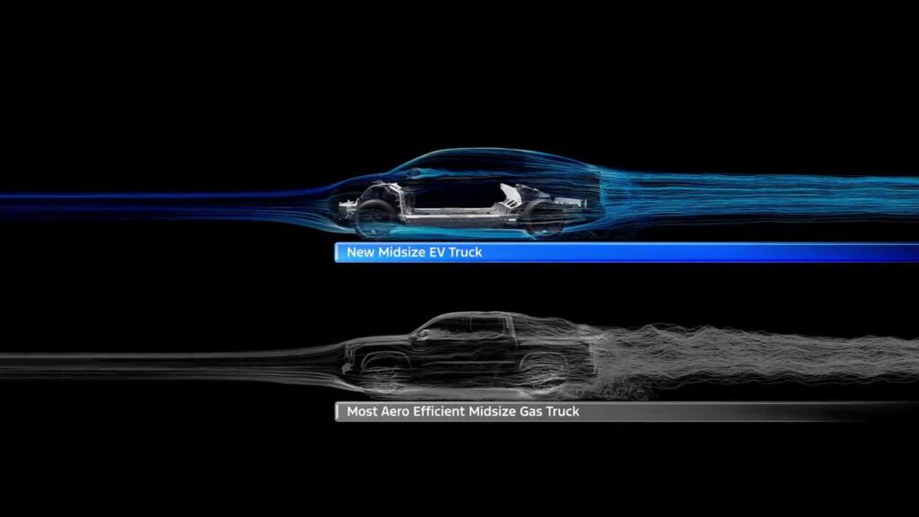 Če bi isto baterijo združili z aerodinamiko najbolj aerodinamično učinkovitega srednje velikega pickupa z bencinskim pogonom v ZDA, verjamemo, da bi naš novi električni pickup imel dobrih 80 kilometrov ali za 15 % večji doseg. In 30-odstotno izboljšanje pri avtocestnih hitrostih.
