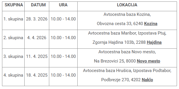 Treningi bodo potekali v DARS-ovih avtocestnih bazah in bodo razdeljeni na dva dela: