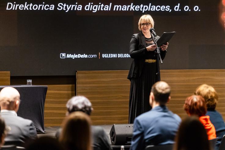 Ugled delodajalca se po besedah organizatorjev ne gradi z besedami, temveč z odnosom do ljudi. "V času umetne inteligence in hitrih tehnoloških sprememb ostaja odločilen človek: njegove ideje, odgovornost in ustvarjalnost," je v uvodnem govoru poudarila mag. Sarah Jezernik Konovšek, direktorica Styria digital marketplaces.Foto: Sportida